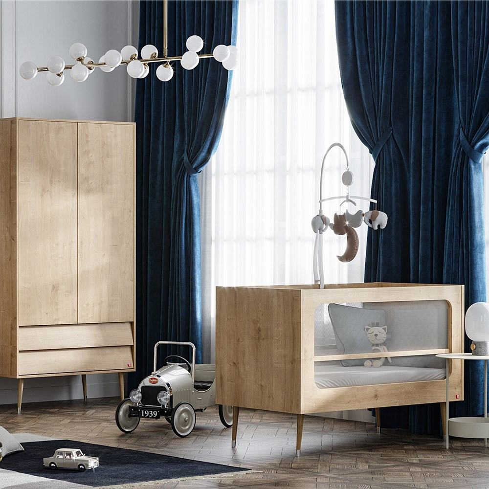 Ezt a gyönyörű kiságyat az 50-es és 60-as évek ihlették, és tökéletes ahhoz, hogy kicsinye jól érezze magát. Átlátszó fekhely a rácsok helyett. A kiságy oldalán található lélegzős hálós rétegnek köszönhetően az anyag szabad légáramlást tesz lehetővé, amely biztosítja a megfelelő levegőztetést és a baba szemmel tartását. A kiságy fekvőlapja három magasságban állítható, hogy a kisbabája fejlődésének minden szakaszában kiszolgálhassa igényeit.