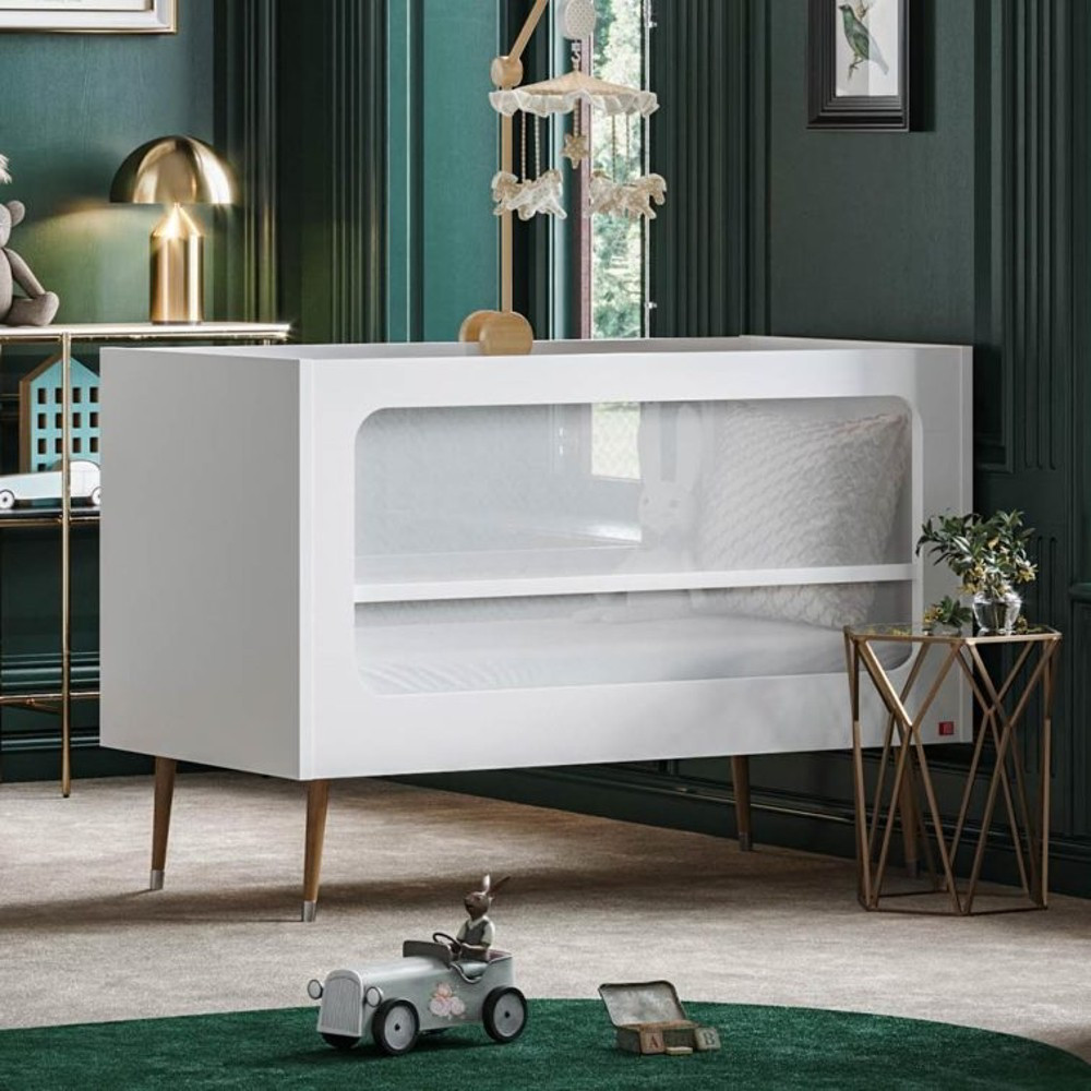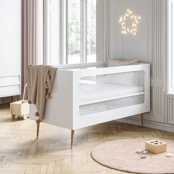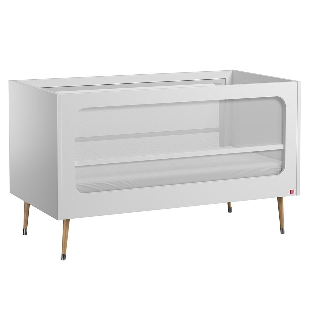 Ezt a gyönyörű kiságyat az 50-es és 60-as évek ihlették, és tökéletes ahhoz, hogy kicsinye jól érezze magát. Az ágy a gyermekkel együtt nő, ha elég idős lesz a pici a kiságy kisgyermekággyá alakítható. Átlátszó fekhely a rácsok helyett. A kiságy oldalán található lélegzős hálós rétegnek köszönhetően az anyag szabad légáramlást tesz lehetővé, amely biztosítja a megfelelő levegőztetést és a baba szemmel tartását. A kiságy három különböző magasságba állítható, így a növekedés során történő igazítása egyszerű feladat lesz.