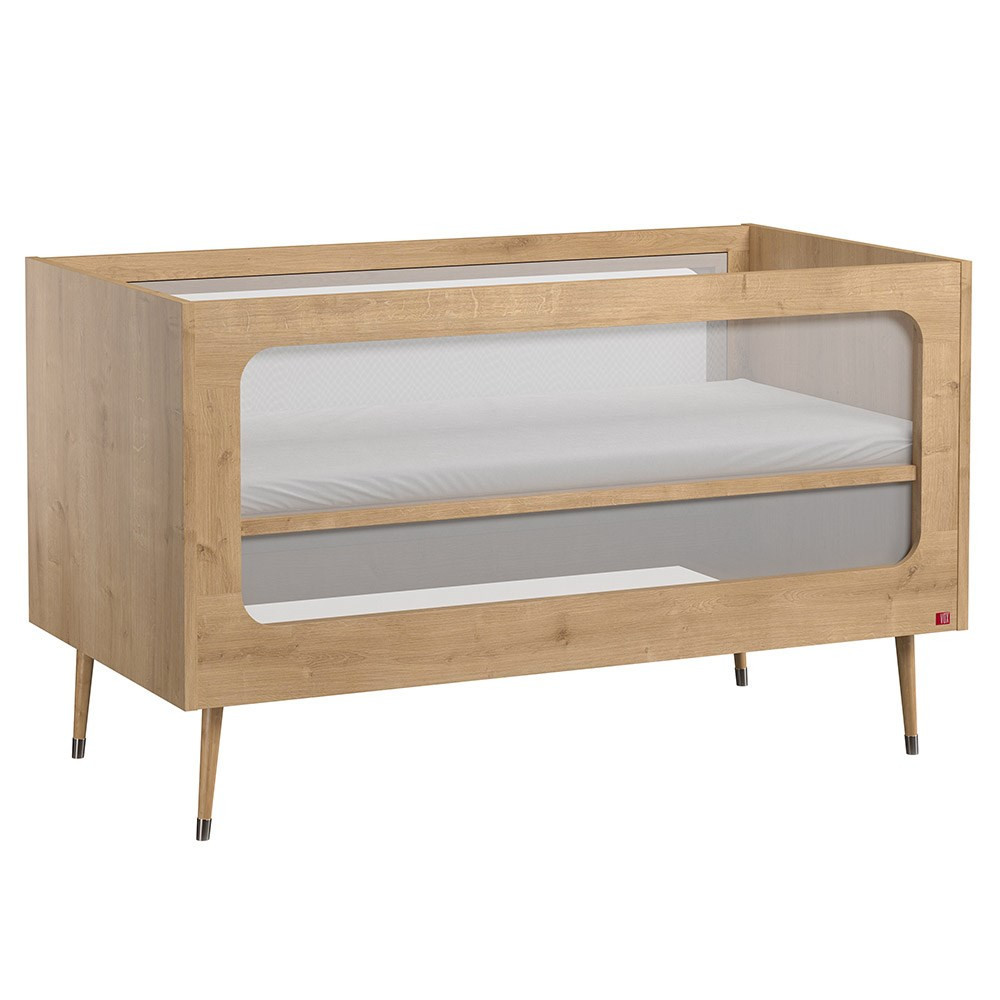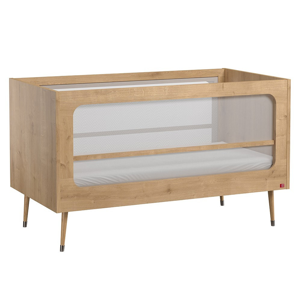Ezt a gyönyörű kiságyat az 50-es és 60-as évek ihlették, és tökéletes ahhoz, hogy kicsinye jól érezze magát. Az ágy a gyermekkel együtt nő, ha elég idős lesz a pici a kiságy kisgyermekággyá alakítható. Átlátszó fekhely a rácsok helyett. A kiságy oldalán található lélegzős hálós rétegnek köszönhetően az anyag szabad légáramlást tesz lehetővé, amely biztosítja a megfelelő levegőztetést és a baba szemmel tartását. A kiságy három különböző magasságba állítható, így a növekedés során történő igazítása egyszerű feladat lesz.