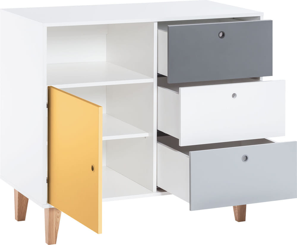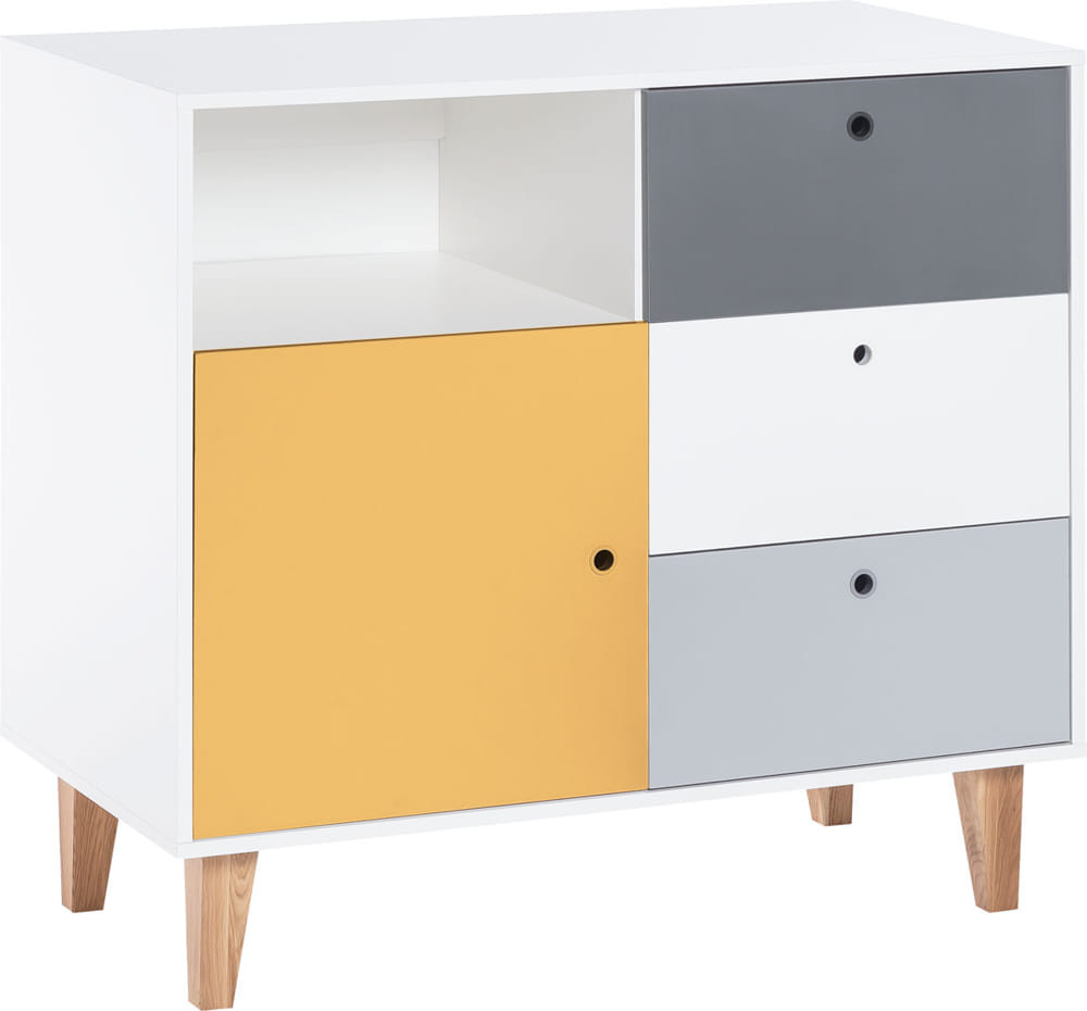 VOX Concept 1 ajtós, polcos, 3 fiókos pelenkázó komód - Mustársárga