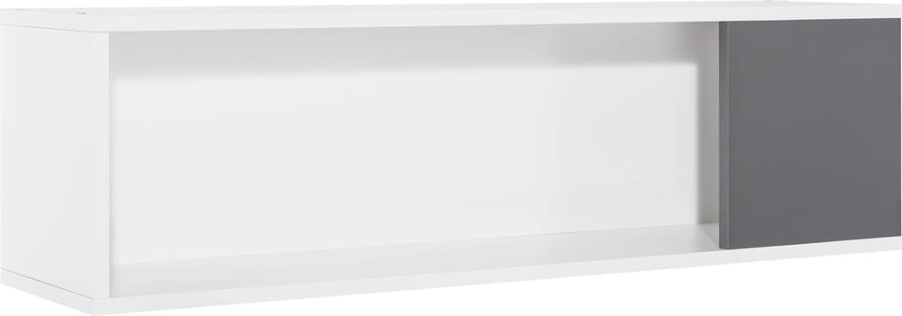 A Concept bútorcsalád tagjaként a könyvespolc fehér és szürke bútorelemekből készül.