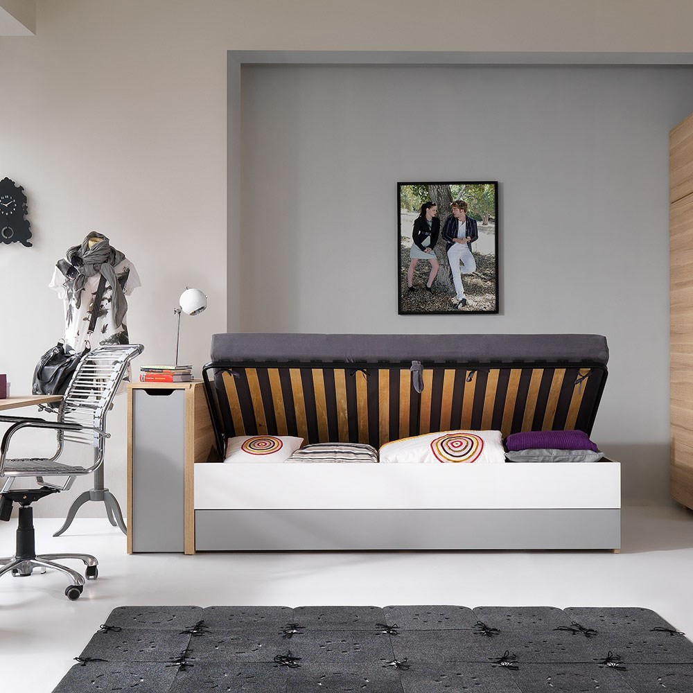 A fiatal Evolve sorozat modern dizájnjával elbűvölte kicsiket és nagyokat! Jellemző az Evolve-ra a lekerekített sarkok és a tömör fa lábak. Fahéj színű tölgy hatású, fehér és szürke részletekkel. Az egyszerű színnek köszönhetően ez az ágy könnyen beleilleszthető bármilyen belső stílusba. Tökéletes kisebb hálószobákba, az ágyneműtartónak köszönhetően pedig remek tárolóhelyet biztosít a tartalék ágyneműk, könyvek és játékok számára.