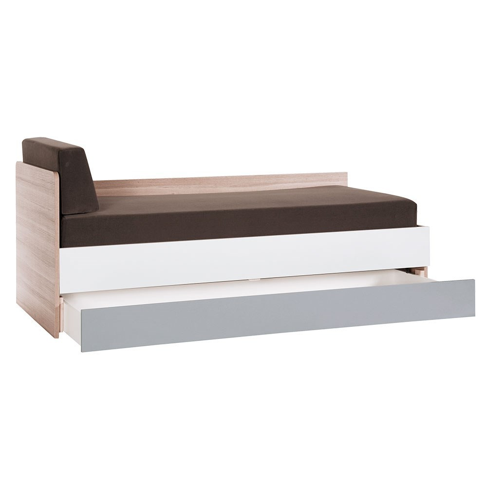 A fiatal Evolve sorozat modern dizájnjával elbűvölte kicsiket és nagyokat! Jellemző az Evolve-ra a lekerekített sarkok és a tömör fa lábak. Fahéj színű tölgy hatású, fehér és szürke részletekkel. Az egyszerű színnek köszönhetően ez az ágy könnyen beleilleszthető bármilyen belső stílusba. Tökéletes kisebb hálószobákba, az ágyneműtartónak köszönhetően pedig remek tárolóhelyet biztosít a tartalék ágyneműk, könyvek és játékok számára. Hatalmas előnye, hogy vendégággyal is bővítheti a váratlan vendégek számára.