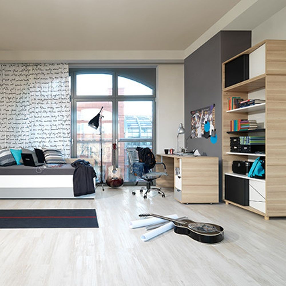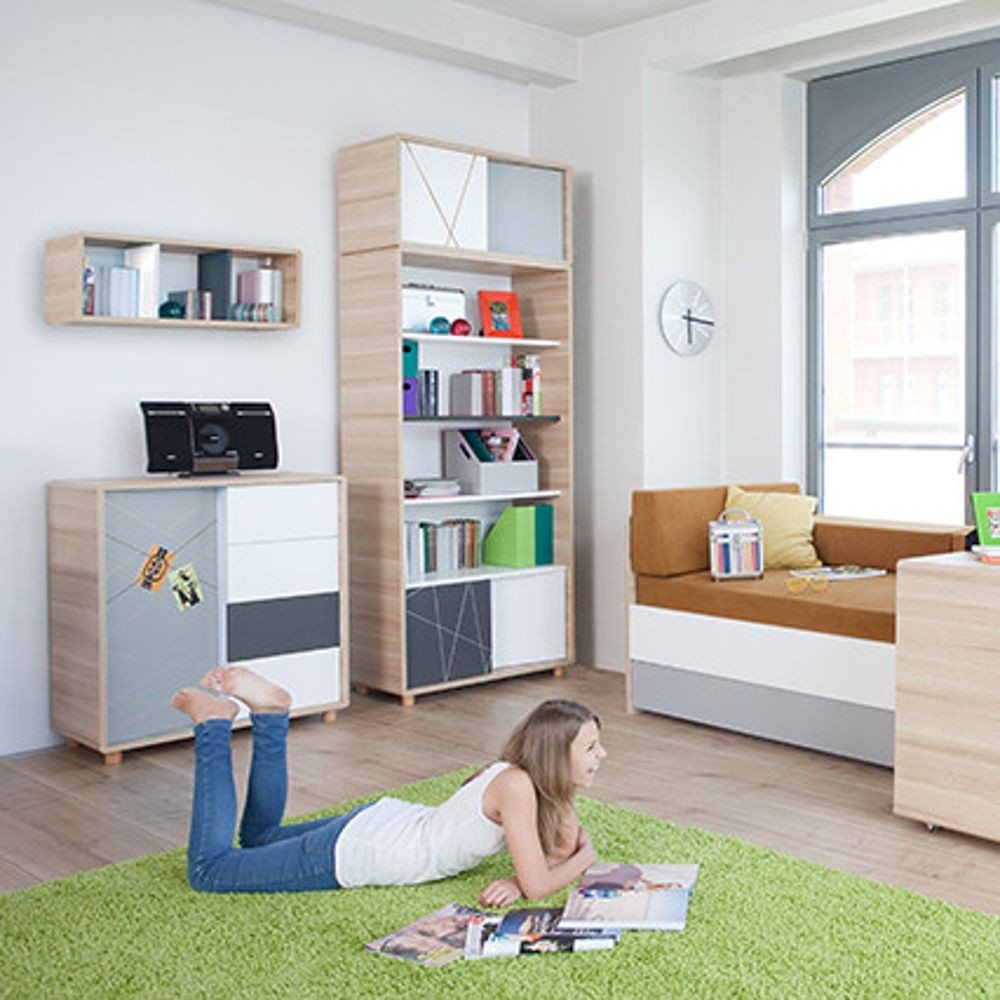 A fiatal Evolve sorozat modern dizájnjával elbűvölte kicsiket és nagyokat! Jellemző az Evolve-ra a lekerekített sarkok és a tömör fa lábak. Az Evolve könyvespolc 3 nyitott polccal és egy 2 ajtós szekrénnyel lett kombinálva. A szekrény bal oldali fekete részére krétával lehet írni, míg a jobb oldalon található fehér részen rugalmas zsinór kapott helyett ahol elhelyezhetőek a fényképek, jegyzetek.