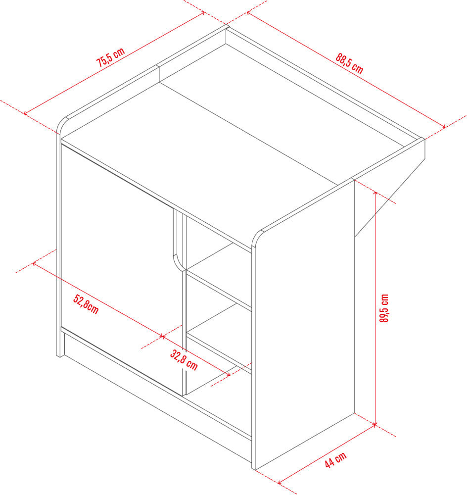 A komód ajtaján nincs kilincs az ajtó nyitásához/zárásához. Ezt a célt szolgálja egy speciális kivágás az ajtóban.