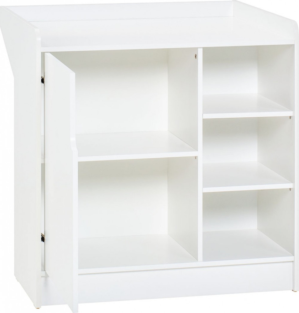 A tágas komódban nagyobb és kisebb tárgyak is elférnek, melyek eleinte a babaápoláshoz kellenek, később a nagyobb gyermek dolgai tárolhatóak benne.