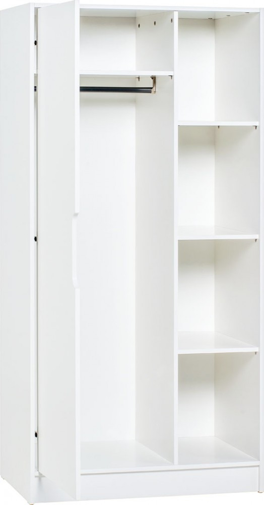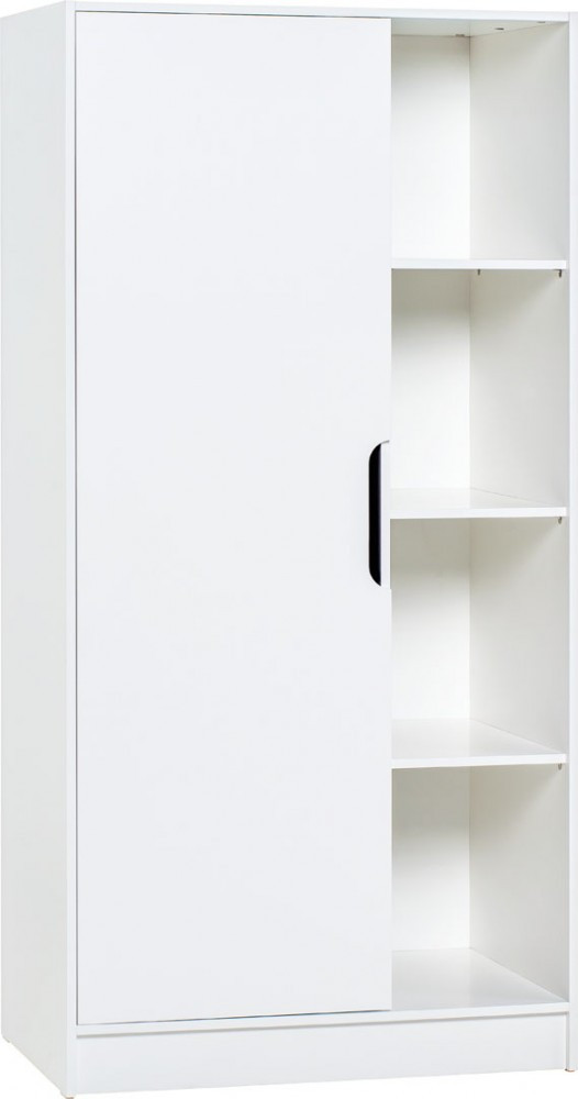 Praktikus tagolású 1 ajtós szekrény jobb oldalán 3 nyitott elrendezésű polccal.