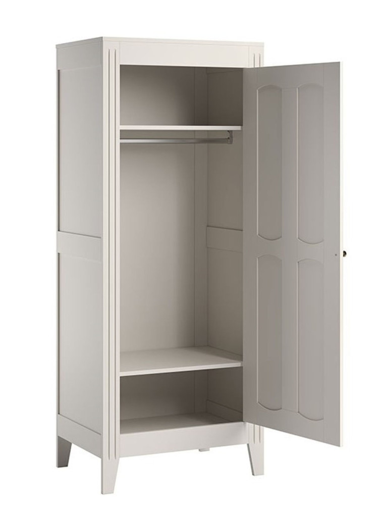 A VOX Milenne időtlen és vintage ihletésű dizájnnal rendelkezik, hogy megfeleljen a modern és hagyományos elvárásoknak egyaránt. A faragott részletek, az aranyfém fogantyúk egyszerűek és mégis visszafogottak. A rendkívül tágas gardróbban egy akasztósín kapott helyet, hogy búcsút inthessünk a gyűrődéseknek. Az akasztósín alatti polcos részen a fontosabb dolgok is helyet kaphatnak. A felső polc ágynemű, takarók és játékok tárolására használható, az alsó polcos rész pedig tökéletes a cipők számára. Lágyan záródó ajtó a biztonság érdekében.