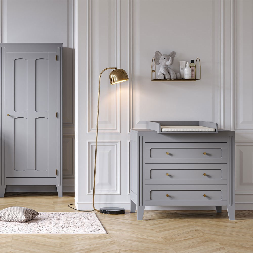 A VOX Milenne időtlen és vintage ihletésű dizájnnal rendelkezik, hogy megfeleljen a modern és hagyományos elvárásoknak egyaránt. A faragott részletek, az aranyfém fogantyúk egyszerűek és mégis visszafogottak. A pelenkázó toldalék felszerelésével a komód lehetővé teszi a baba biztonságos és kényelmes gondozását, ugyanakkor helyet biztosít a kozmetikumok és pelenkák tárolására is. Az a nagyszerű ebben a darabban, amikor a pelenkázó egységre már nincs szükség, eltávolítható, és gyönyörű komóddá varázsolható, amely együtt nőhet a kicsivel. Lágyan záródó fiókok a biztonság érdekében.