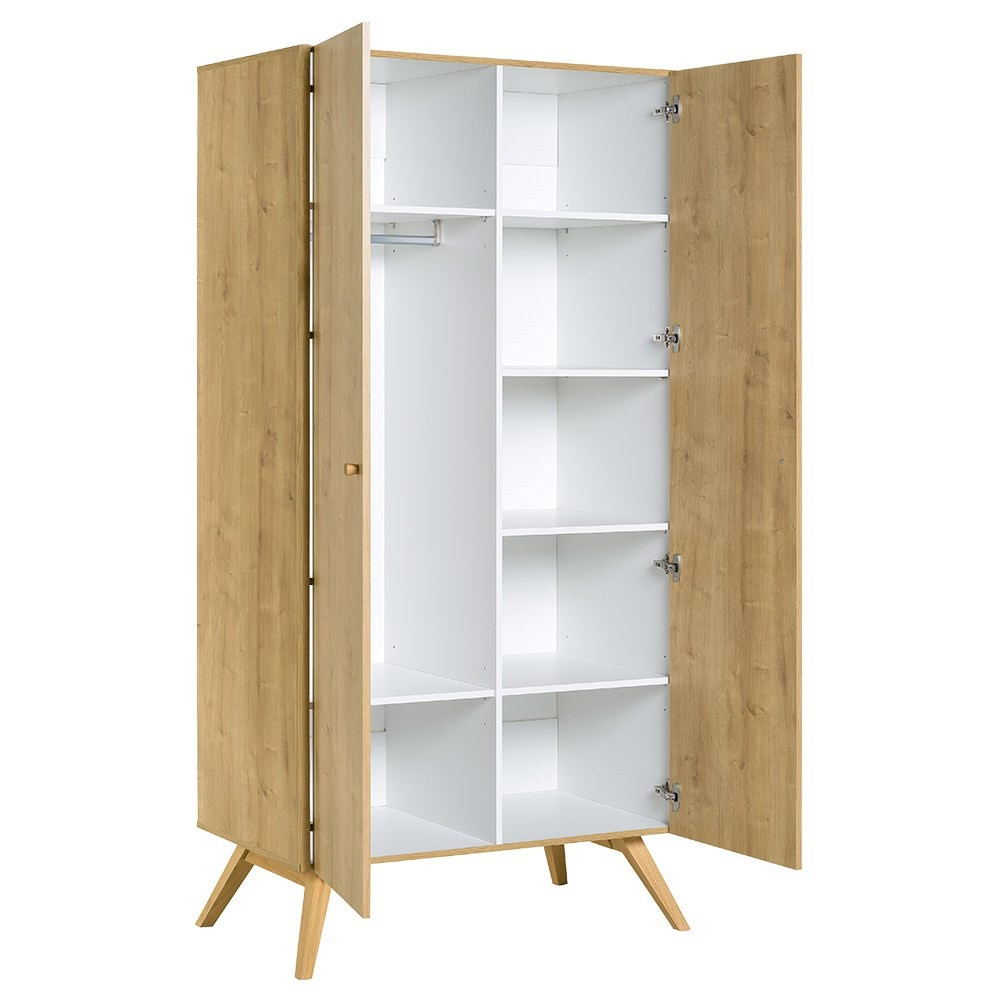 A rengeteg tárolóhelynek és a gyönyörű meleg tölgyfa felületnek köszönhetően a Vox Nature stílusa és funkciója tökéletesen párosul, így minden modern otthon üdvözlendő kiegészítője. A 8 különálló résznek köszönhetően még a páratlan zoknik és a nyakkendők is otthont kaphatnak. A 2 ajtós nagyszekrény bal oldalán tágas akasztós, a többi pedig polcozott résszel lett gazdagítva. A fogantyúk és a lábak tömör tölgyfából készültek. Az ajtók lágy zárás funkcióval rendelkeznek.