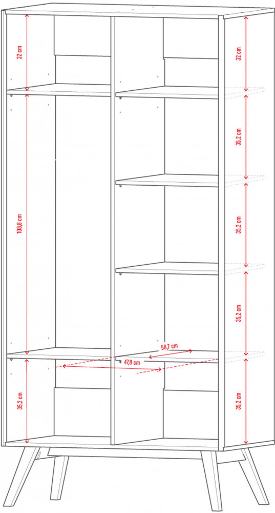 A Vox Nature lenyűgöző, letisztult vonalai minden gyerekszoba gyönyörű kiegészítőjévé válik. Az egyszerű skandináv dizájn tökéletesen illeszkedik bármilyen belső stílusba. Rengeteg pakoló rész áll rendelkezésre, így elég hely lesz az ágyneműk, takarók és játékok rendszerezésére. A 2 ajtós gardrób két részre van osztva: egy rúddal és két polccal felszerelt részre, (egy magasan és egy alul) és egy másik tárolóhelyre, amely 4 polcból áll. Kiváló minőségű, tömör tölgy lábakkal.