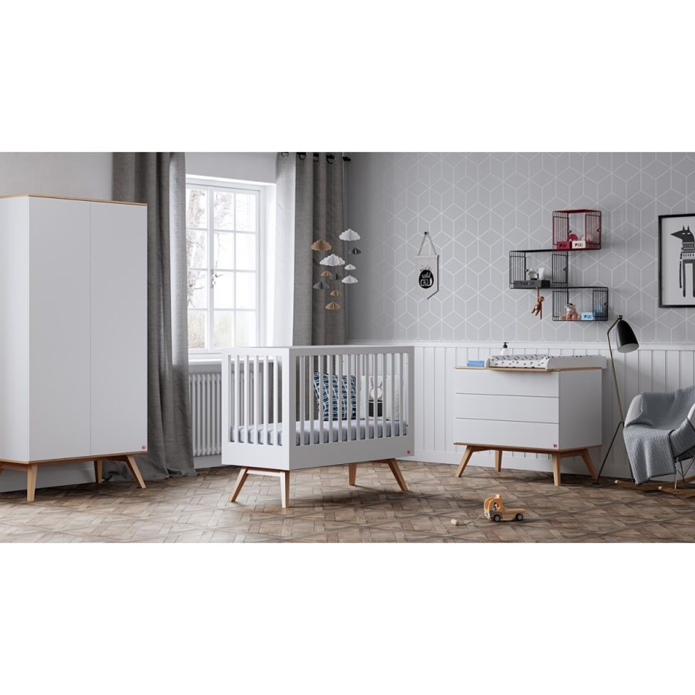 Amikor eljön az ideje, ez a csodálatos kiságy az oldalak eltávolításával kisgyermekággyá varázsolható, amely tökéletes a gyermekkor felé vezető első lépcsőfokon! Kiváló minőségű,tömör tölgy lábakkal. A kiságy három különböző magasságba állítható, így a növekedés során történő igazítása egyszerű feladat lesz. Az egyszerű kialakítás nagyszerű kiindulópont álmai gyerekszobájának megalkotásához!