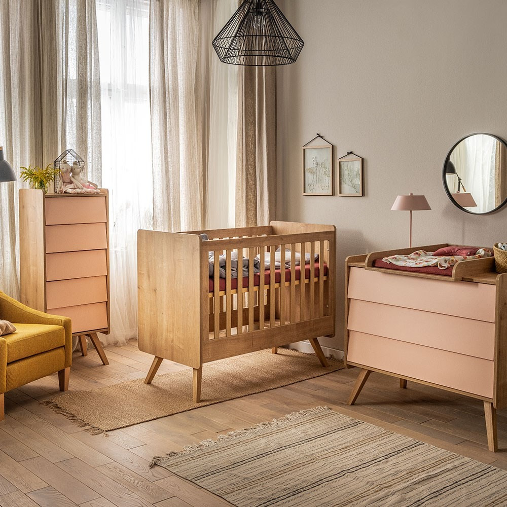 A tágas fiókok pedig tolónyitható rendszerrel rendelkeznek, amely a fiók elejét kézzel megnyomva működik. Kiváló minőségű laminált lapból készült tömör tölgy lábakkal, az öt tágas fiókkal bőven lesz hely az imádnivaló babaruháknak.