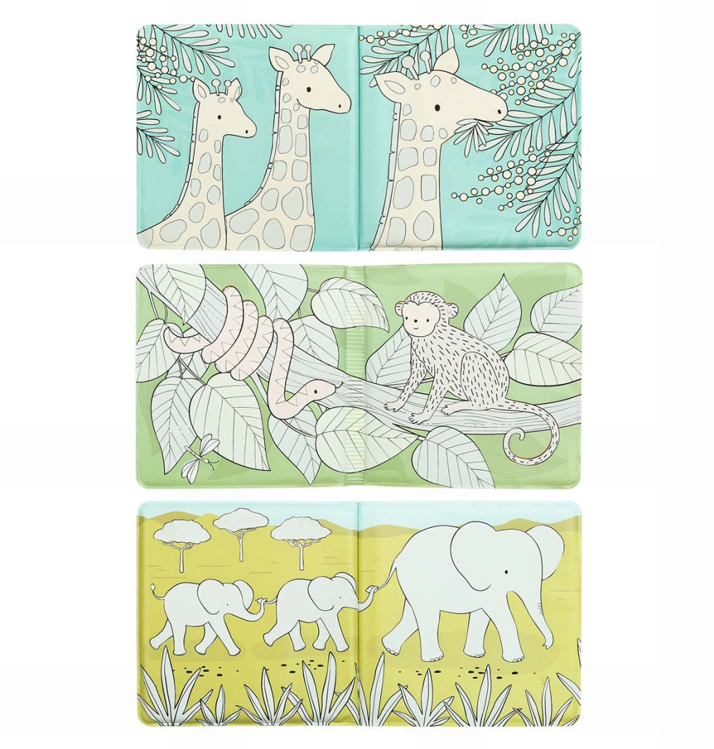 Ki mondta, hogy a fürdés nem lehet móka és kacagás? Ez a kedves figurákkal illusztrált vízálló, pancsolós könyv ideális játék a fürdéshez. Puha anyagának, lekerekített sarkainak és tökéletes méretének köszönhetően a legkisebbek kedvence. A fürdőkönyv színei vízzel érintkezve jelennek meg, így akár nedves ecsettel is kiszínezhető.