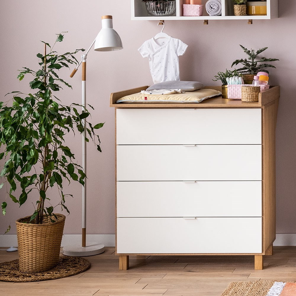 A pelenkázó toldalék (külön vásárolható meg) felszerelésével a komód alkalmassá válik a kisbaba ellátásra, pelenkázására.