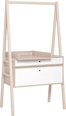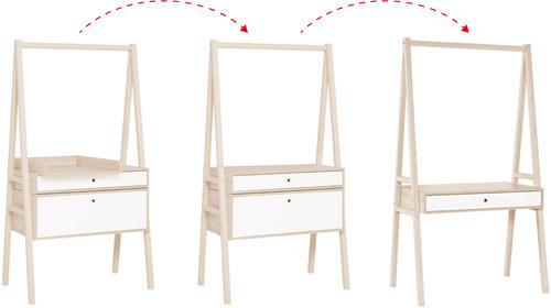 A pelenkázó toldalék és az alsó nagy fiók eltávolításával a komódból könnyen íróasztal alakítató ki, mely már egy ifjúsági gyerekszobában is megállja a helyét.