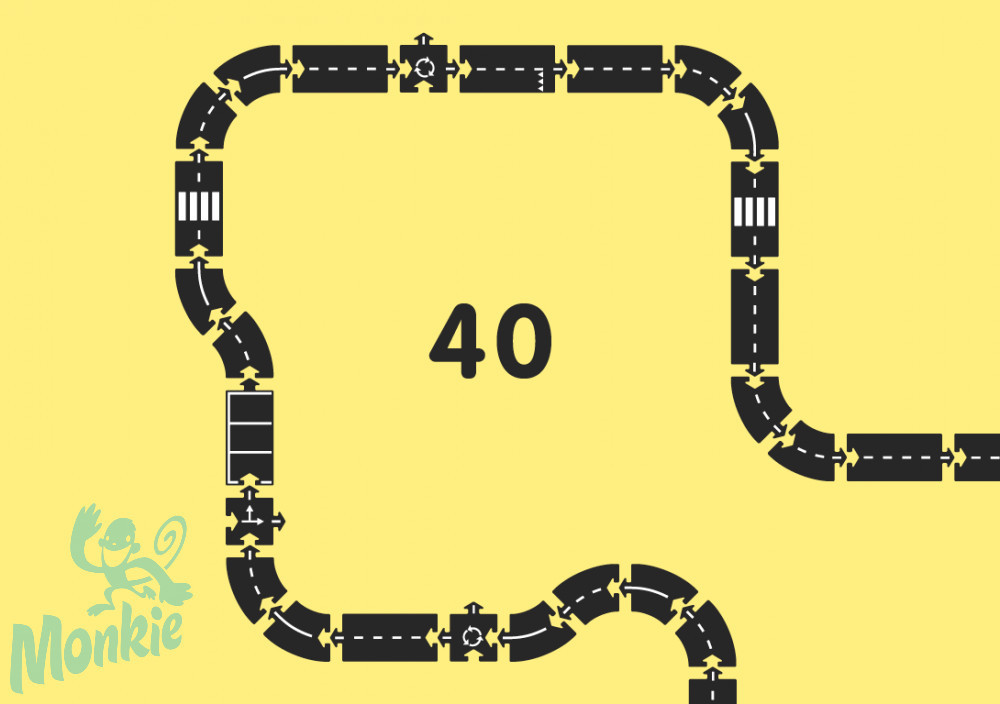 Tartalma: 16 db kanyar, 16 db egyenes, 4 db kereszteződés és 4 db körforgalom