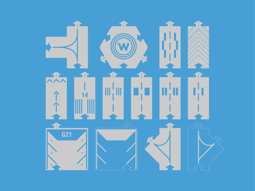 A KIFUTÓPÁLYA a karton sorozat legújabb kiegészítője. 14 db újrahasznosított kartonból áll, kék nyomtatott grafikával a repülőtereken látható tipikus jelölésekkel, például gurulóutak, felszálló és leszálló pálya, átjárók és helikopter leszálló. Négy újonnan tervezett alakzatot tartalmaz, amelyek nagyszerű kiegészítést nyújtanak a Waytoplay választékához. Újrahasznosított kartonpapírból készül, kifejezetten beltéri használatra tervezték. Extra előnye: a gyerekek a hátuljára írhatnak vagy firkálhatnak. A KIFUTÓ készlet nem rugalmas anyagú, mint a WaytoPlay eddigi autópályái, de tökéletesen illeszthetők a rugalmas részekhez is.