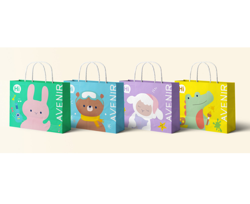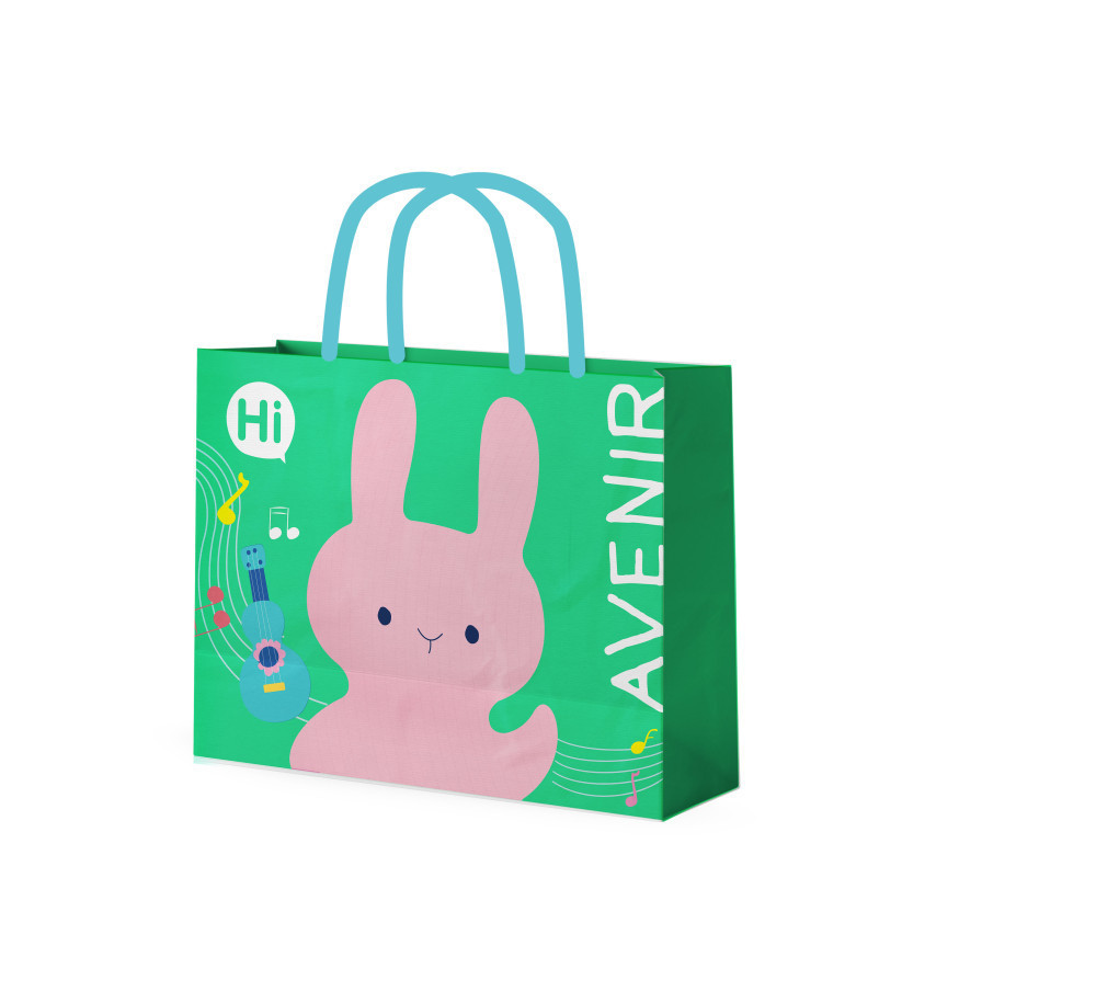 Aranyos ajándéktáska, amin az Avenir márka egyik kedves nyuszi figurája található.