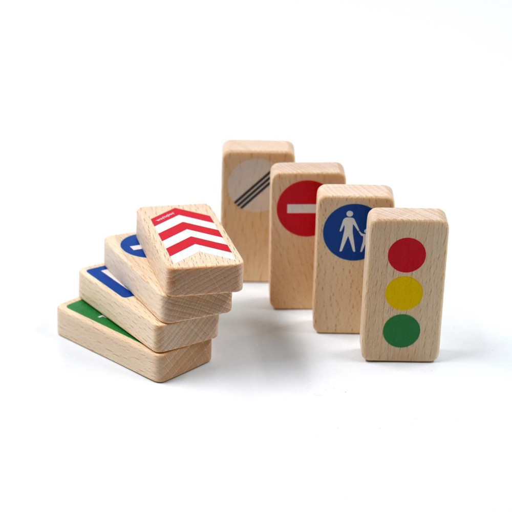 Ez a fantasztikus készlet 8 db fából készült közlekedési táblát tartalmaz, amelyek tökéletes kiegészítői a Waytoplay rugalmas autópályának.