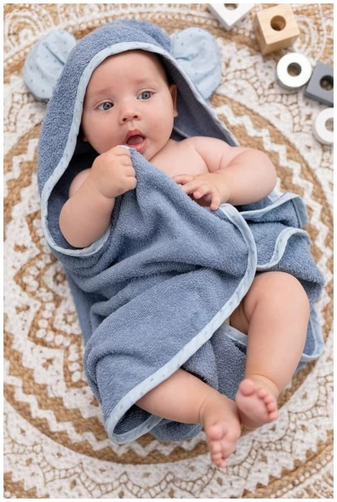 Bubaba kapucnis törölköző fülekkel 110x75 cm - Elefánt kék