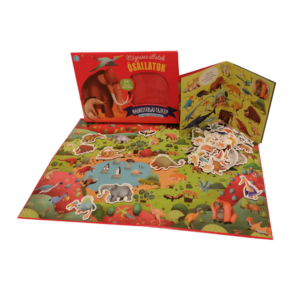 Keresd meg az 54 db őskori állat helyét a mágnestáblán! Figyeld meg, hogy ezek az állatok, hol éltek, mit ettek, hogyan élték a mindennapjaikat. A játékhoz mellékelt könyv szórakoztatóan mutatja be az őskorban a Földet benépesítő leglenyűgözőbb élőlényeket.