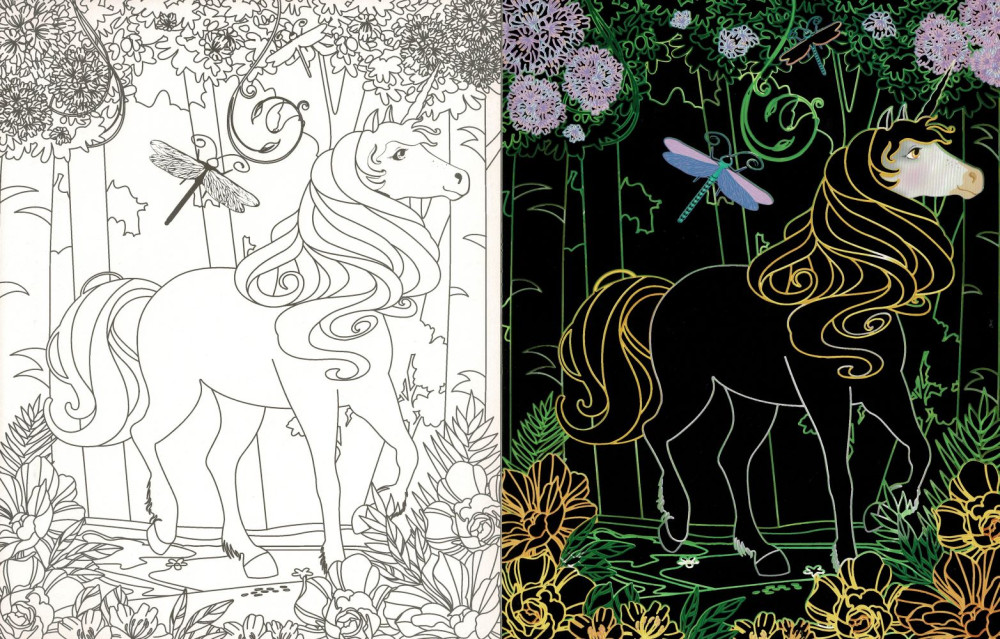 Fedezd fel az unikornisok csodálatos világát! A mellékelt pálcával kapard le a fekete réteget, és meglátod, milyen csodás, színes világ tárul eléd a lapokon! Emellett a színezésre váró oldalakon te magad is létrehozhatod a saját verziódat. Ha kész a mű, akár ki is emelheted a lapot, és odaadhatod egy barátodnak...