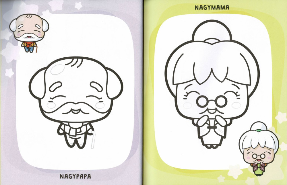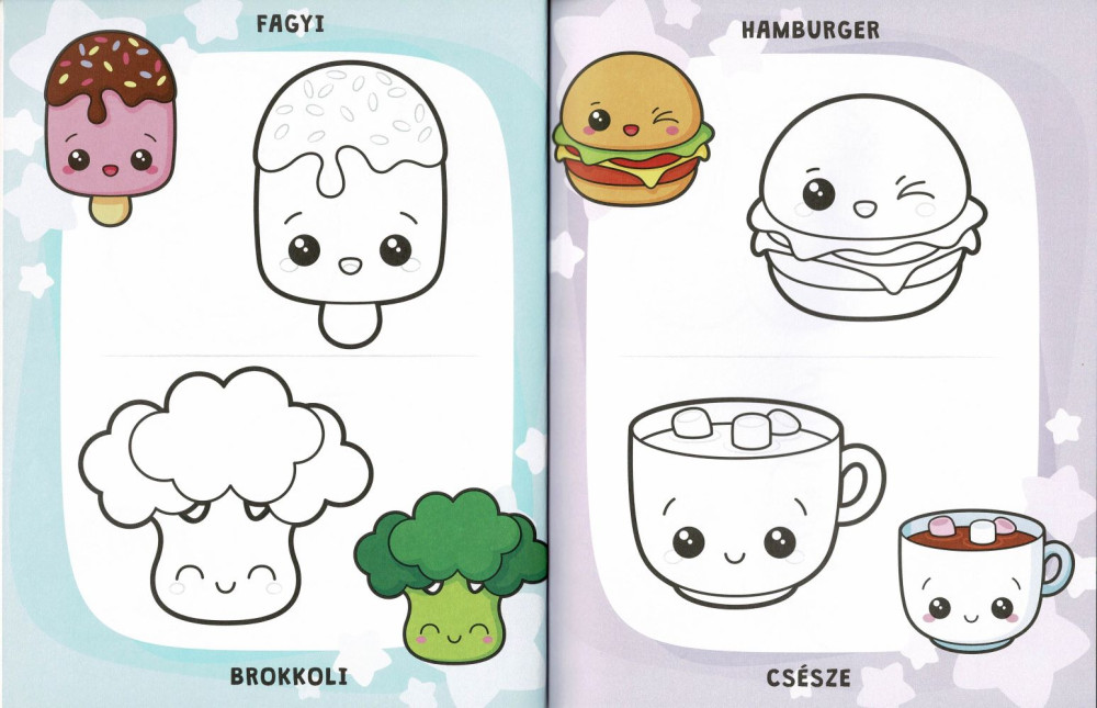 Ebben a színezőben 73 csibi és kawaii stílusú képet találsz, amelyet a minta alapján, vagy akár kedved szerint is kiszínezheted.