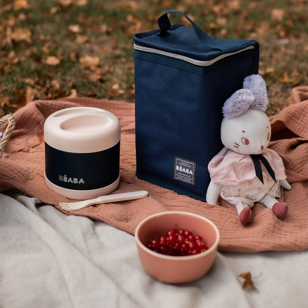 Béaba Rozsdamentes acél Tároló doboz - 500 ml - Halvány rózsaszín - Sötétkék -