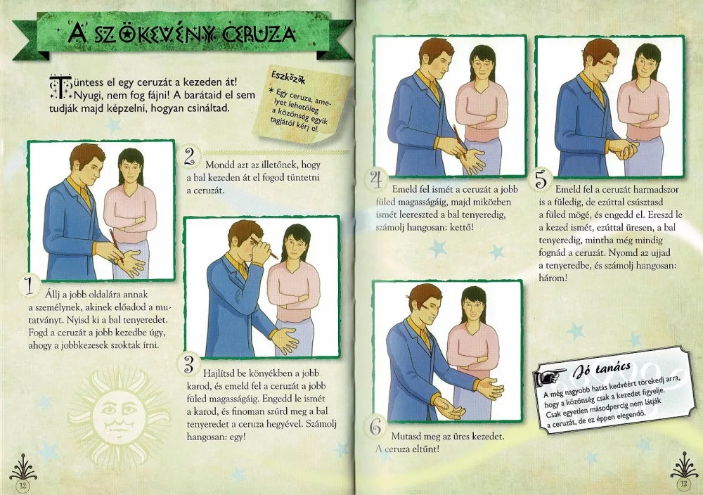 A legjobb trükkök tárházát tartod a kezedben. Eltüntethetsz, majd újra elővarázsolhatsz különféle tárgyakat, sőt a levegőbe is emelheted őket. Kitalálhatod, mi van a kártyalapokon, vagy átvarázsolhatod a pénzérméket az egyik helyről a másikra. Kizárólag olyan dolgokra lesz szükséged a mutatványaidhoz, amelyeket otthon is megtalálsz. Induljon a varázslat, legyél Te az új bűvészkirály!