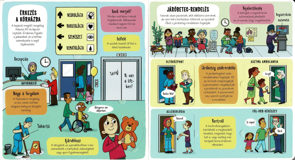Gyertek kis felfedezők! Pillantsatok be velünk a kórházak titokzatos világába. Nézzünk be együtt a kórtermekbe, műtőkbe vagy a járóbeteg-rendelésre. Ismerjük meg a röntgen, a sebészet vagy a szülőszoba titkait. Rengeteg felfedeznivaló vár!