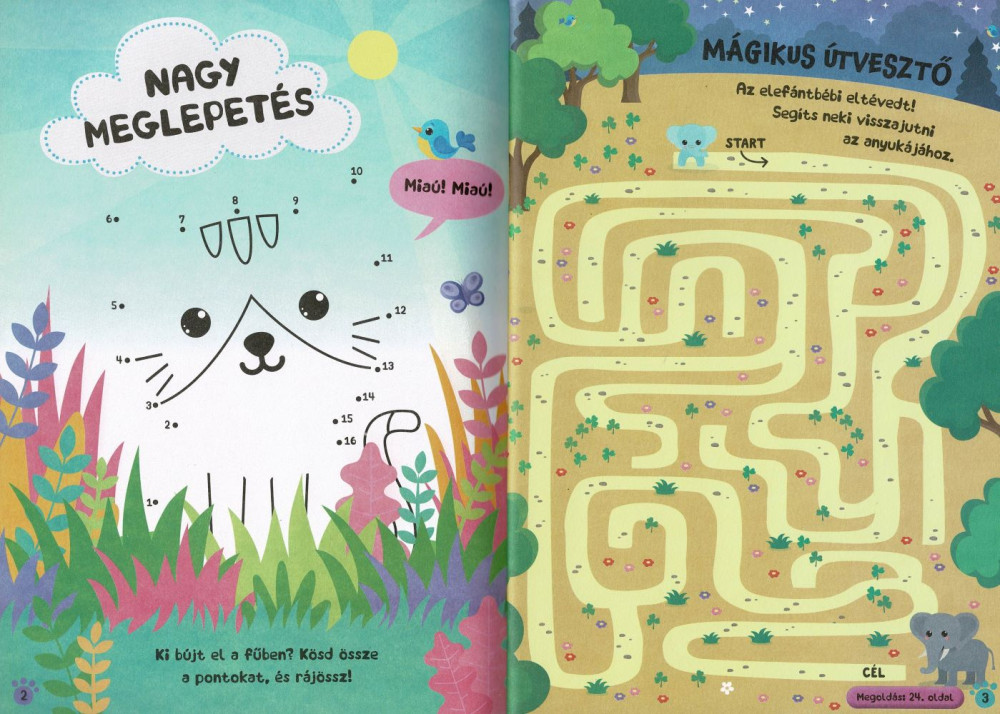 Készülj fel, az elképesztően aranyos feladatokra! Segíts a kutyusnak megtalálni a jutalomfalatját, keresd meg a kakukktojás kacsát vagy készíts édes állatkölyköt a kiemelhető elemekből. A pufi matricákat pedig bárhol felhasználhatod.