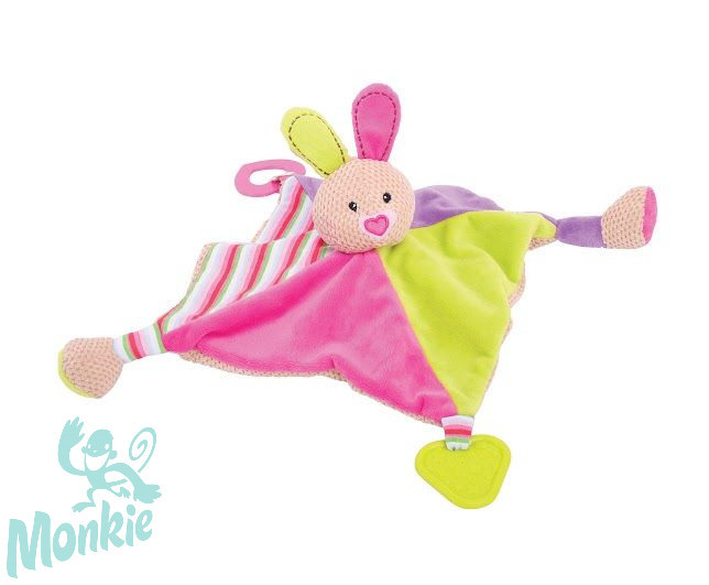 Ez a puha, plüss Comforter, csörgővel, rágókákkal, színes, lágy, puha anyagával könnyen felkelti a kicsik érdeklődését.