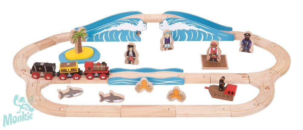 "A Bigjigs 2016-os újdonsága a nagy kalóz vonatszett. A szettben minden megtalálható ami egy igazán izgalmas játékhoz kell. A Bigjigs vasút egyike a legkomplexebb vasutaknak. Pályáink és kiegészítőink magas minőségű, gondosan válogatott alapanyagokból készülnek, megfelelnek az európai biztonsági előírásoknak.