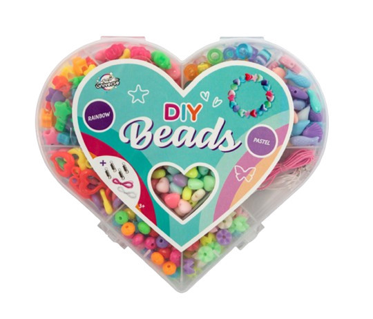 Szivárványos és pasztell színű gyöngyfűző készlet szív alakú dobozban Grafix