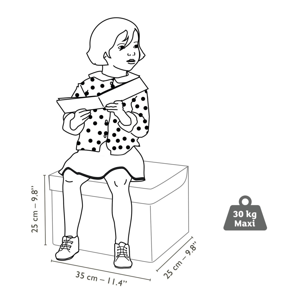 Színes, tűzhelyes játékdoboz. Szép dekorációs tárgy, mely használható szerepjátékhoz, de tárolhatók is benne a játékedények, egyéb játékok. Fából készült szerkezetének köszönhetően szilárd, gyermek ülőkévé alakítható (max. súly: 30 kg).
