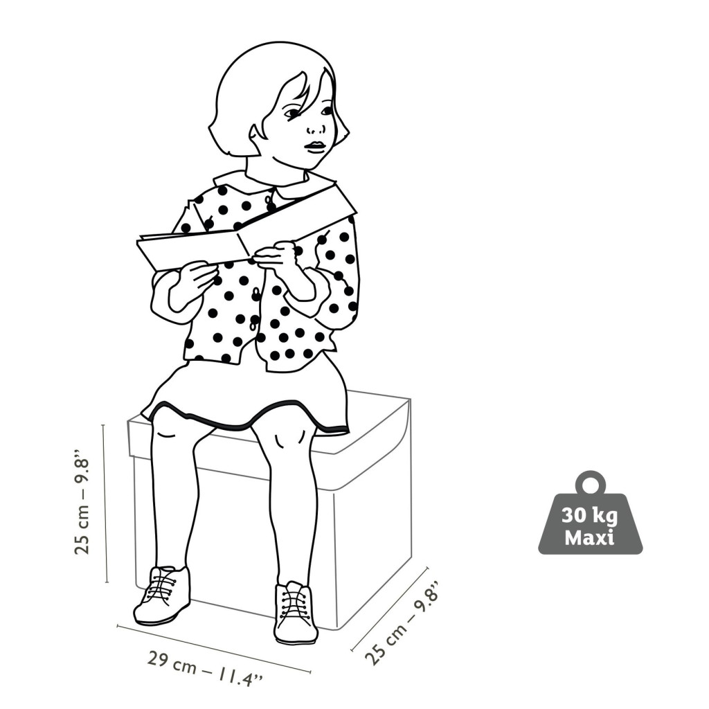 Színes, bohém játékdoboz. Egy gyönyörű dekoratív darab, amely tökéletes minden rendben tartásához. Masszív fa szerkezetének köszönhetően praktikus gyermekülésként is használható (max. súly: 30 kg).