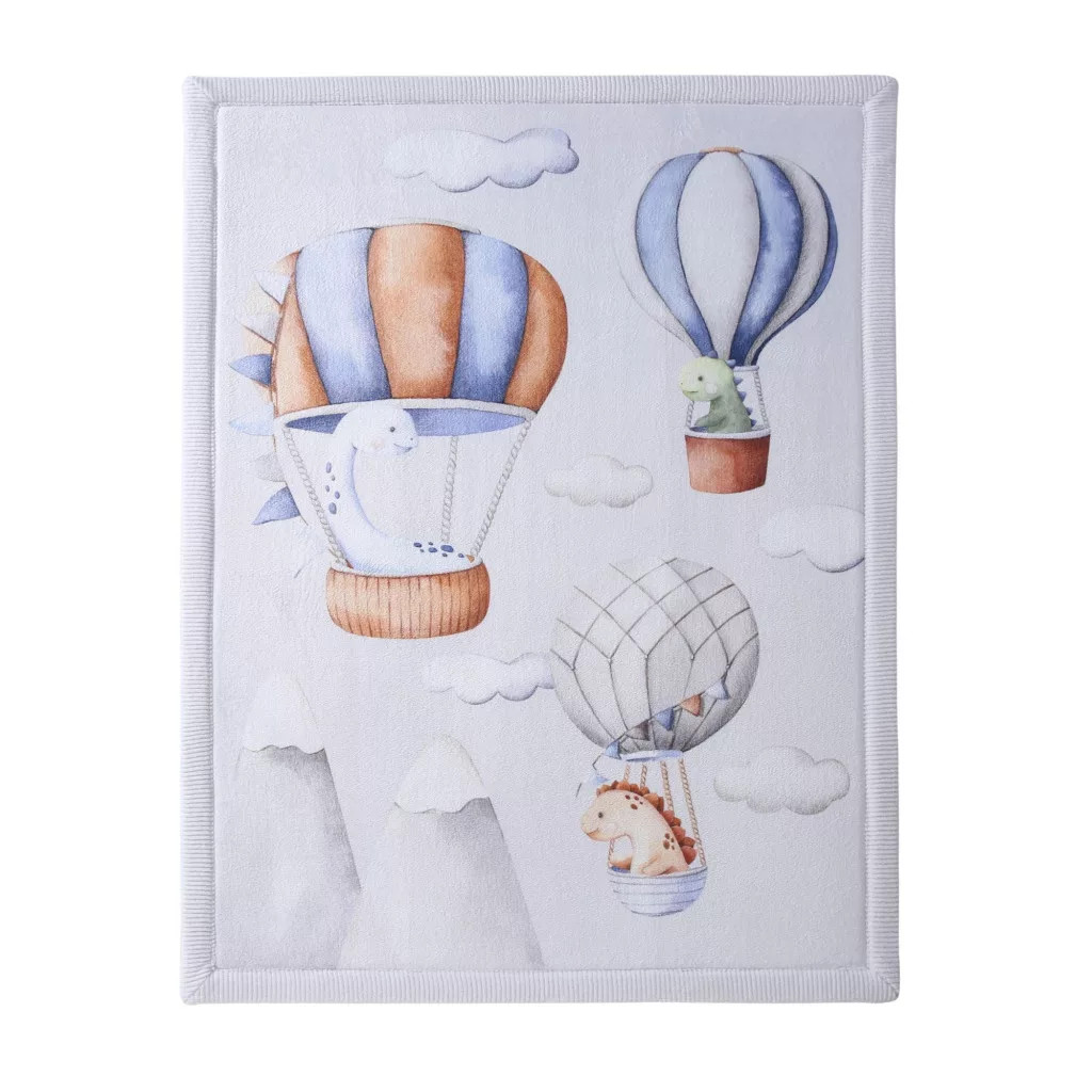 Inspiráló "Utazó Dínók" dizájn: A pasztell árnyalatok és a léghajón utazó dínók azonnal egy mesebeli világba repítik a gyerkőcöket, ösztönözve a képzeletet és a kreatív játékot.