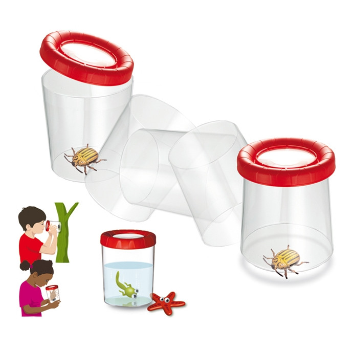 Megfordítható lencséjű bogárnézegető pohár, több színben.
